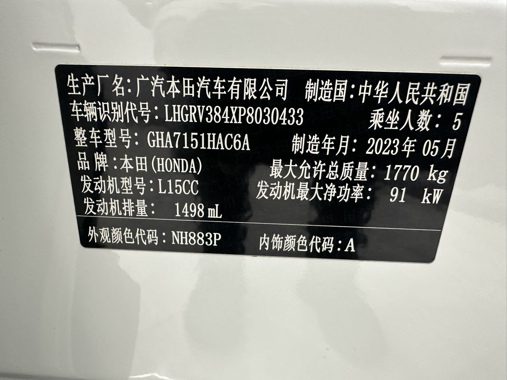 【Номер шасси】030433